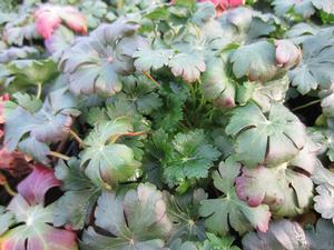 - Cranesbill. Evergreen! Low growing hybrid of fragrant dark green foliage with clusters of pinkish-white blooms. Rabbit and deer resistant. Drought tolerant once established. Mature height 12-18” tall.