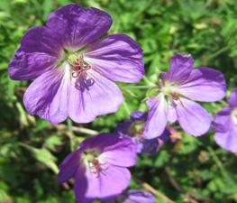 - 2 ½" violet blue flowers above deep-green foliage, with a spreading habit. Tolerant of heat and humidity. Good reddish-brown fall color. Mature height 18 - 20" tall.