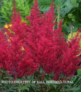 - False Spirea. Deep red plumes atop dark-green foliage. Great used for cuttings. Mature height 21-24" tall.