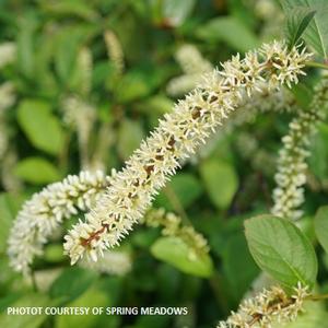 - Sweetspire. Very fragrant, white blooms with a mixture of dark and light green foliage. Fall foliage is also beautiful. Compact habit. Deer resistant and shade tolerant. Mature size 2-3’ tall.